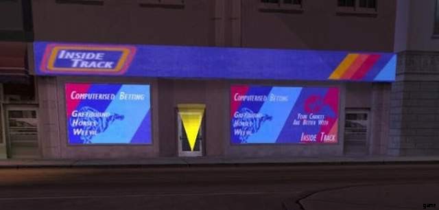 南ア州にはインサイド トラックの馬券販売店が 2 つあります。彼らはゲームの最初からあなたに開かれています。ロスサントスに 1 つ、レッド カウンティ、特にモンゴメリー エリアに 1 つありました。 Catalina's Hideout safehouse (ミッション First Base の後にロック解除) の北東にあるため、Montgomery のものをお勧めします。