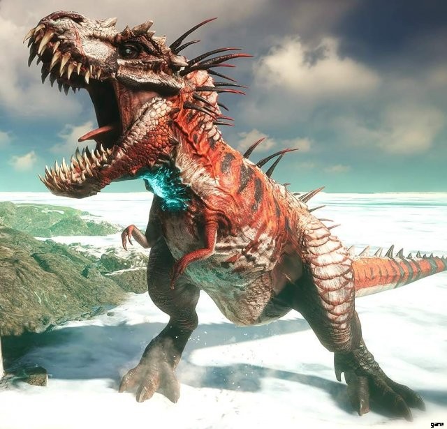 The T-Rex is a mutated Tyrannosaurus with a face full of teeth and an insatiable appetite. She is capable of a plethora of attacks, including biting, stomping, leaping, roaring, creating shockwaves, and like all big Dinos, she is also capable of a ranged spitting attack.