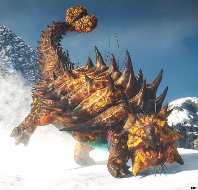 彼らは短距離のバッシュとクラッシュ攻撃が可能ですが、彼らの名声の主な主張は、回避された場合に簡単にショットできるようにする充電攻撃です。すべての大きな恐竜と同様に、遠距離の唾吐き攻撃も可能です。それらを打ち負かす最も簡単な方法は、サッチェル チャージを使用することです。