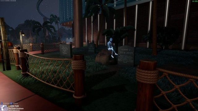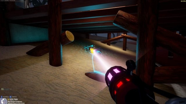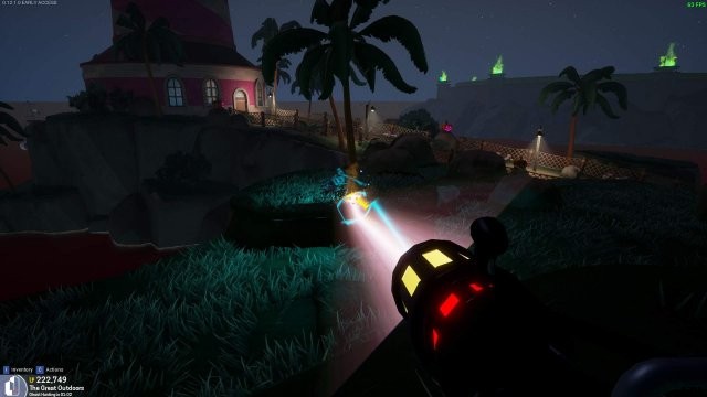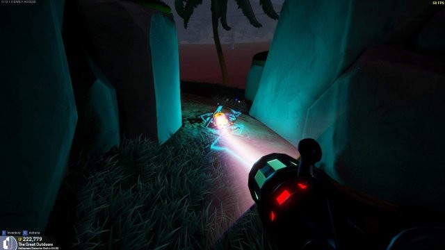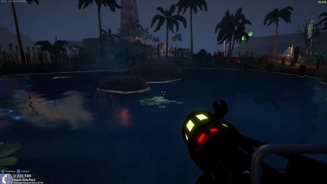 迷路が終わったら、ビーチサイドのポントに戻り、ゲームパッドを見渡します。岩と茂みがあります。