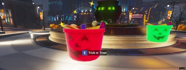 出現するもう 1 つのミニゲーム イベントは、トリック オア トリート イベントです。キャンディーのバケツが広場のいたるところに出現し、それらを集めるだけで、いくらかのお金と、食べたり売ったりできる保持可能なアイテムを手に入れることができます。