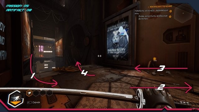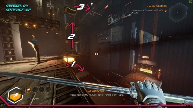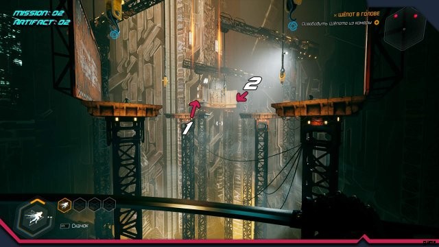 アーティファクト 10. 前の場所の直後、換気シャフトを出た後。壁に沿って次のプラットフォームまで走り、振り返って走りますが、フックにしがみつくのではなく、フックが取り付けられている鉄の梁に飛び乗ってみてください。