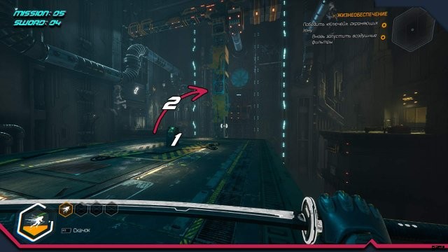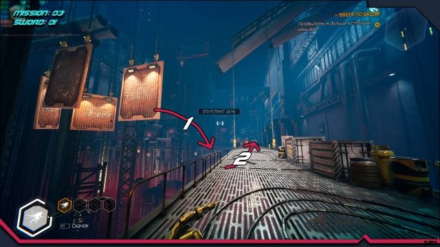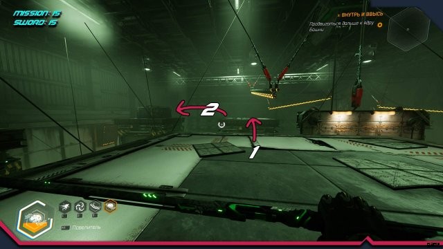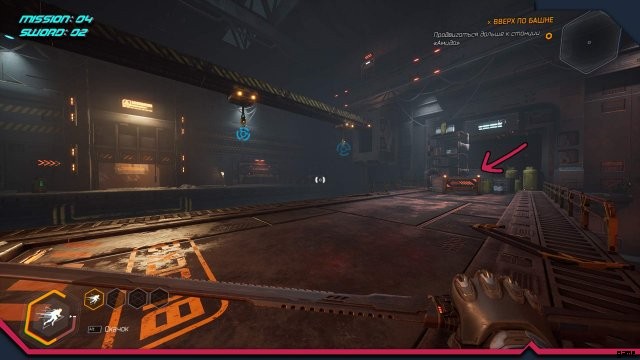 剣 4. フック付き回転クレーンのある場所。クレーンを回してすぐにフックにしがみつき、クレーンのリモコンから反対側のプラットフォームにジャンプする必要があります。
