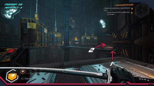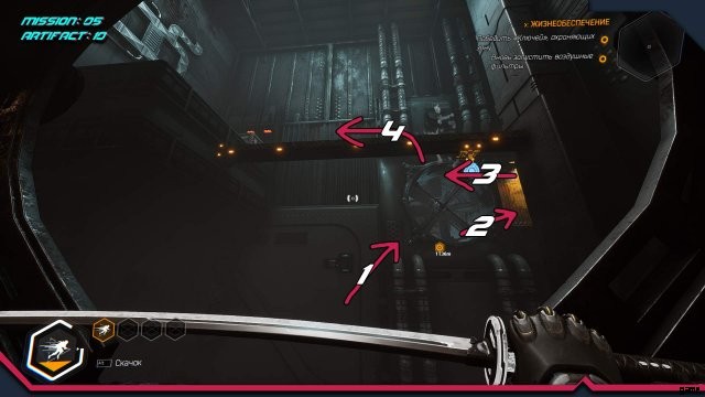 アーティファクト 8. アーティファクトは換気シャフトにあります。もう少し先に進み、時間の遅延を有効にして戻ると、ファンの速度が遅くなり、アーティファクトを取ることができます。