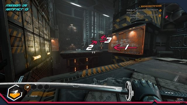 アーティファクト 7. 敵がいる最後のアリーナの隅では、動くタイルに登る必要があります。