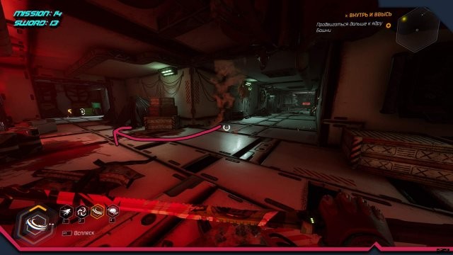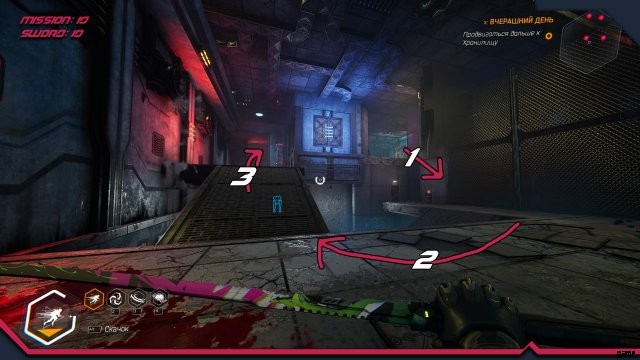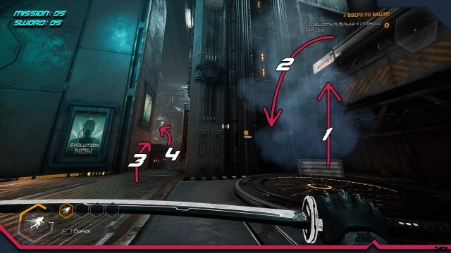 ソード 12. 敵ロボットがいる場所。 2 番目のスーパー ジャンプで、ドアのカーテンの下に滑り込みます。