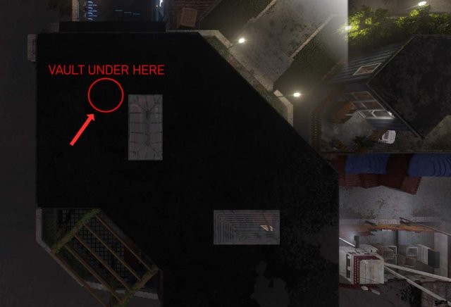 Vault はこの建物の下にあり、建物はマップの左端に位置しています。