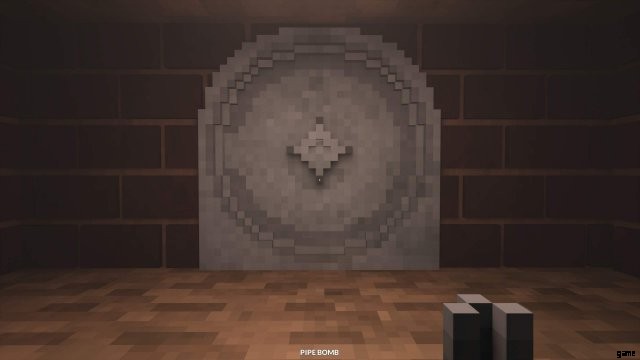 建物の入り口近くにある金庫室に通じるドア。階段を降りると金庫が見えます。ボールトを爆破しようとするのは忘れてください。下の画像からわかるように、これはオプションではありません。でも心配はいりません!厚板と知識があれば、金庫室への入場は簡単です。