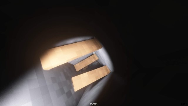 金属を破壊するために何かを使用したいので、フラップが開いた状態でグリルが開き、自分が入ることができます。銃、爆発物、または金属カッターがこれを行うことができます.木製の厚板を通気口に上向きに配置しますが、急すぎないようにしてください。これが完了したら、これらの厚板を使用して通気口まで歩きます。悲しいことに、通気孔が上向きになるため、通気孔の両側に厚板を配置する必要があります。配置されたときにそれぞれにジャンプし、このプロセスを上に到達するまで繰り返します.これは閉所恐怖症であり、懐中電灯があっても非常に暗い場合があります。いずれにせよ、下の画像に示されているように、あなたの厚板は私のものといくらか一致するはずです.