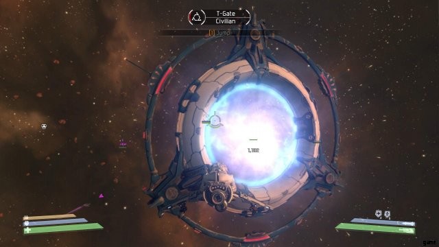 単一のセクターを移動する最速の方法は、ナビ ブイ ネットワークを使用することです。ナビブイは、ゲームの世界のいたるところにあります。それらを使用することは、構造にドッキングするのと同じくらい簡単です。各ブイはペアのブイにリンクされています。 1 つにドッキングすると、ほぼ瞬時にそのペアにテレポートします。使用可能な番号付きアクションとして表示されるアクション自体は、ジャンプと呼ばれます。