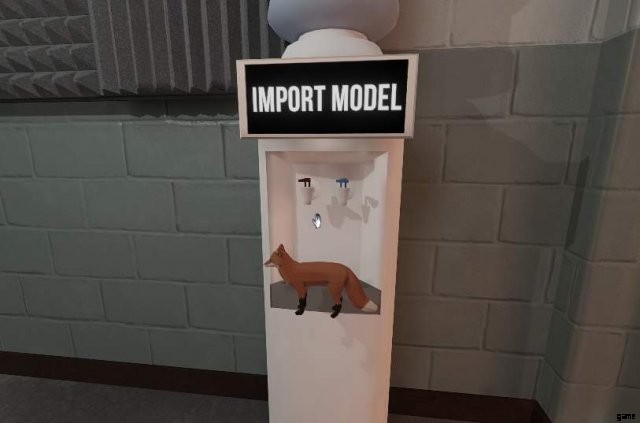 モデルをインポートするには、ウォーター クーラーをクリックします。これにより、モデル ファイルを見つけて開くことができるファイル ブラウザが表示されます。モデルはウォーター クーラーの前に表示され、ゲーム内のつかむことができるオブジェクトのように持ち上げて扱うことができます。