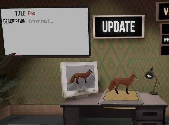 オブジェクトをインポートすると、オブジェクトのデフォルトのサムネイルが生成されますが、メイン ルームのフォト ステーションに移動してカスタマイズできます。画像フレームの前にオブジェクトをドロップし、コンピューター モニターで正しく見えるように調整します。額縁をクリックして背景を変更できます: