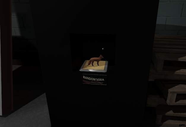それが完了したら、ゲーム内の任意の自動販売機でランダム ソーダ ボタンを押すと、モデルが自動販売機から飛び出します。