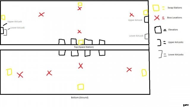 この出会いは、地上と宇宙の 2 つの異なるエリアで発生します。遭遇の大部分は宇宙で行われ、レプリカントを避難させるための 4 つのエアロックと、最後の抵抗が行われる場所があります。
