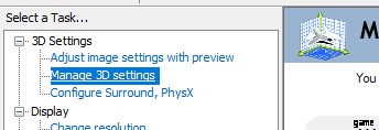 - 次に、次のように [3D 設定の管理] をクリックします。