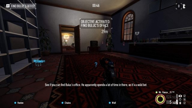- Buluc のオフィスの外にいる 2 階のローミング ガード。あなたが金庫のロックを解除している間、彼は金庫を持って部屋を通り抜けることができることに注意してください。