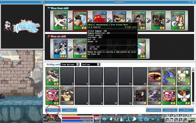 - 次に、ダメージ、ヒット、射程の良いアーツを 1 つか 2 つ見つけて、デッキの前に置きます。これらは頻繁に使用するからです。余分な統計についてあまり心配しないでください。