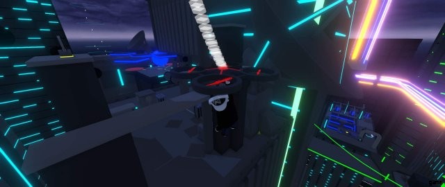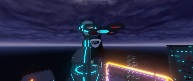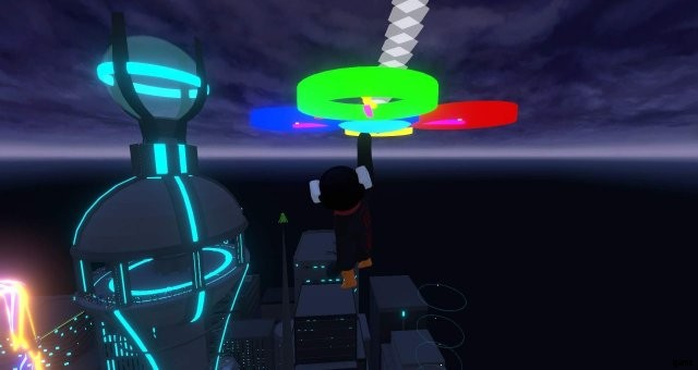 黄色い人形は建物の上にあり、青色のスイッチで柱を上下に動かす必要があります (写真はそこに向かって飛んでいます。縫いぐるみ人形は写真の右下にあります)。