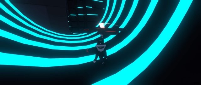 赤い人形は、巨大な穴が開いた建物と一緒に見つけることができ、青い光がその中をぐるぐる回っています (写真はトンネル内で撮影されたものです)。