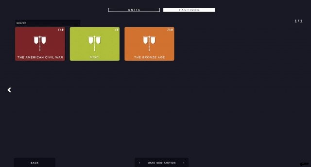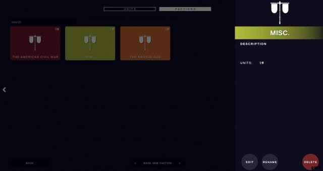 それをクリックした後、[Create Unit] を押して、作成と保存を終了します。次に派閥画面に移動し、[派閥の作成] を押します。その後、派閥に名前を付けて、そこに入れたいユニットをクリックします。