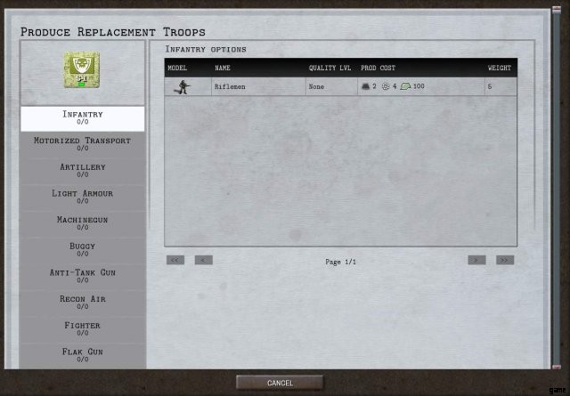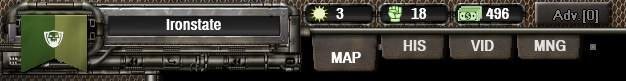 - 新兵 – 入隊した兵士のプール。これは、歩兵、自動車化、機械化、装甲、砲兵、およびその他の形態の軍事ユニットの師団を作成および強化するために使用されます。彼らはあなたが所有するゾーン、つまり都市のみから募集されます。