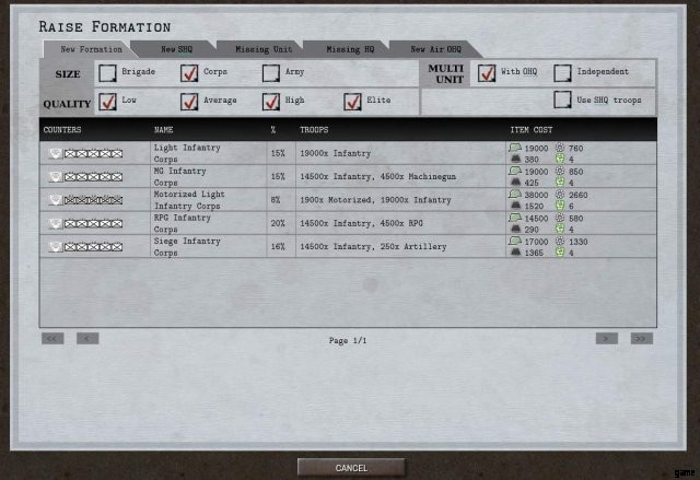 SHQ 部隊を使用するということは、フォーメーションが SHQ 補充部隊プールに保管されている利用可能な補充部隊を使用することを意味します (利用可能な場合)。