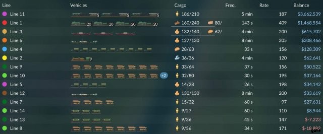 この例では乗客サービスは問題ありませんが、都市が物資の供給によって成長し、列車が時速約 100 km で走るまで、私はそれらを開始しません。