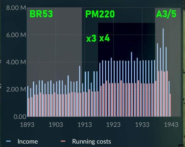 PM220 ははるかに多くの車両を使用し、A3/5 は 50km/h ではなく 80km/h で走行しますが、BR53 を使用し続けることができますが、価格は高くなります。では、どうすればよいでしょうか?