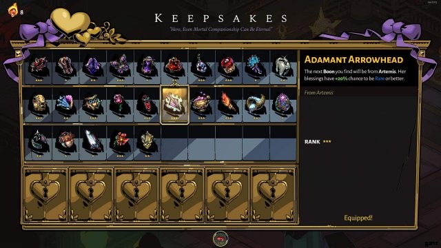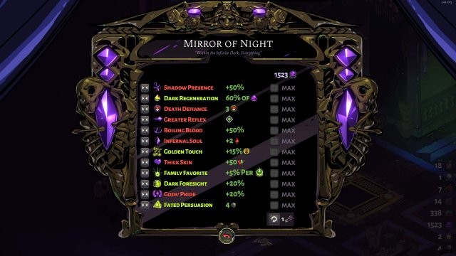 - Decreases rarity of your boons, then increases rarity of them randomly every 3 encounters, pretty good investment if you get it early.