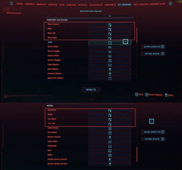 Cyberpunk 2077 – 徒歩での移動と運転のためのアナログ キーボード バインド