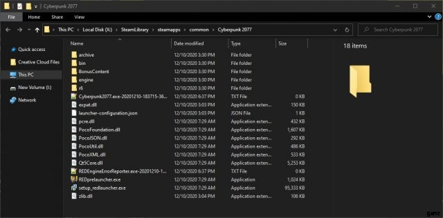 #3. Cyberpunk のインストール フォルダーに移動します。