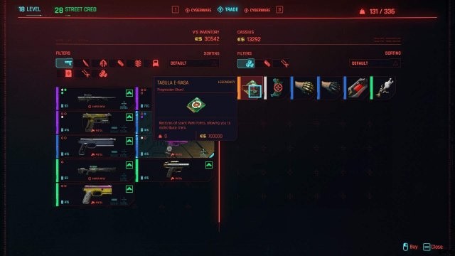 すべての使用済み Perk ポイントを復元して再マッピングするには、Tabula E-Rasa という名前のアイテムを以下から見つけることができます:(Ripdoc はありますか?)