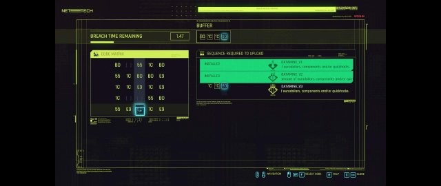 ブリーチングにより、アクセス ポイントとして分類される特定のマシンや端末にジャックインすることができます。これにより、ユーロ ドルとクラフト マテリアルを獲得する機会を与えるミニ ゲームが開かれます。プロローグでデーモンを拾う T-Bug のミッションで初めてこれを紹介されましたが、ゲームではこれがどのように機能するかは実際には説明されていません.