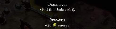 次に、「Umbra」の敵を破壊する必要があります。この中立の敵よりもはるかに恐ろしい敵がいますが、ゲームの最初は圧倒的に感じることがあります. Umbra と戦う準備が整うまで、Autarch の作成は控えてください。倒せばエネルギーを得ることができます。