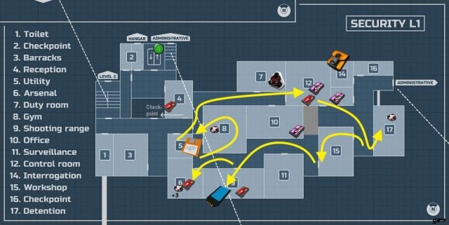理由: 別のポーチのアップグレード (および最後の格納庫) にアクセスするには、青いキーカードが必要です。