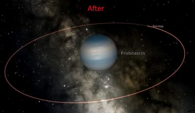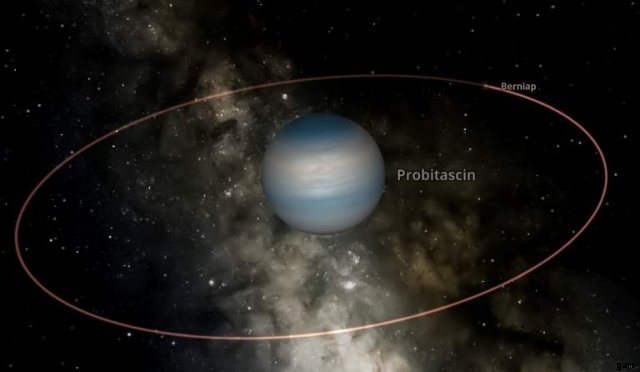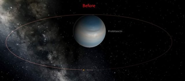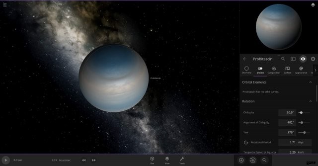 もちろん、月が実際に周回するには何かが必要です。このチュートリアルでは、ランダムに生成された巨大ガス惑星を使用しますが、技術的には、岩石惑星や恒星など、任意のオブジェクトを使用できます。私は手動でこの惑星の傾斜角を少し極端にならないように編集しましたが、違いが明確になるように十分大きくしました: