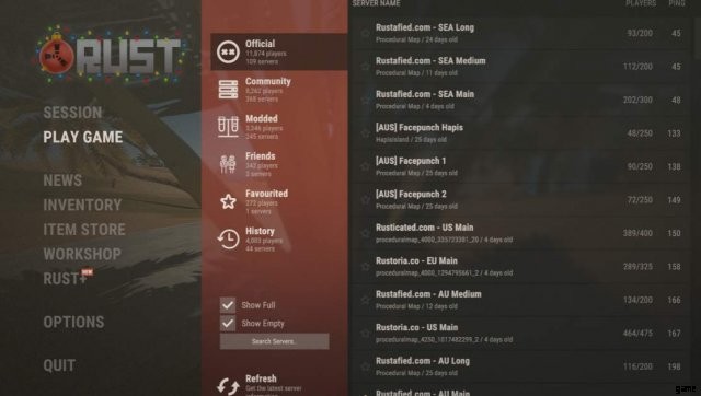 Rust には 3 種類のサーバーがあります。公式、コミュニティ、モッド。公式サーバーとコミュニティ サーバーの収集率は 1 倍で、バニラ サーバーとして知られています。彼らは非常に時間がかかり、初心者にはあまり親切ではありません。ハイポップの公式サーバーは、多くの場合、各プレイヤーが最低 1000 時間の 8 人以上のプレイヤー グループによって管理されています。あなたが始めたばかりなら、私は個人的に、ロープをより簡単に学ぶことができる、より低いポップでわずかに改造されたサーバーをお勧めします.