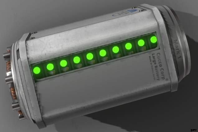 バッテリー (大型バッテリー) は、システムの非常用電源を蓄える複雑なコンポーネントです。メインジェネレーターがオフの場合、または電源コネクターが取り外されている場合、システムはバッテリーからの電力を自動的に使用します。緑色のライトは、バッテリーの電力量を示します。ライトが少なく、赤色が多いほど、電力が少ないことを意味します。システムをオフにせずにバッテリーを取り外すことができます。