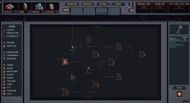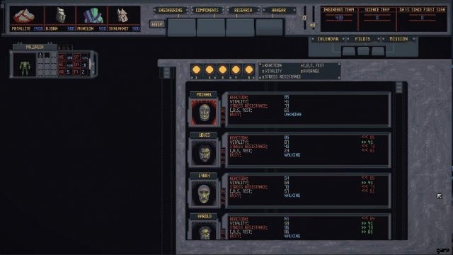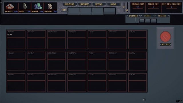各数字は、より暑く危険な場所を示しています。数値が高いほど、環境はより敵対的です。まず第一に、あなたが私と同じことをするなら、おそらくあなたのロスターにはメカがないので、先に学んだことを使っていくつかを完成させてください.研究したり、エンジニアの労力が足りなくなったりした場合は、カレンダー画面に移動して日を進めることができます。