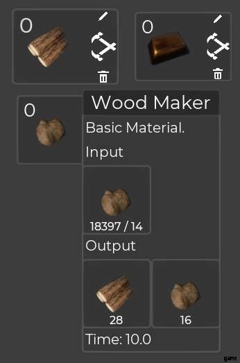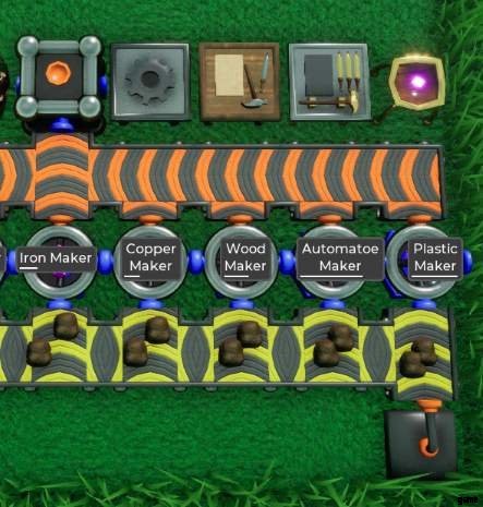 この組立ラインは、Automatoe、Copper、Gold、Iron、Oilives、Sand、Wood などの単純なリソースを生産できます。コンパクト サンド、アース オーブ、ガラス、またはプラスチックは作成されません。これらは「成長」するのではなく、組み立てテーブルで (または自動組み立てオブジェクトを使用して) 作成されるためです。
