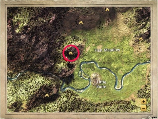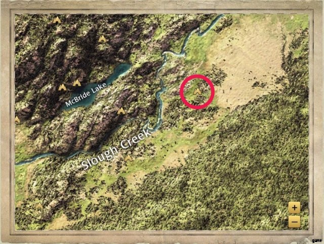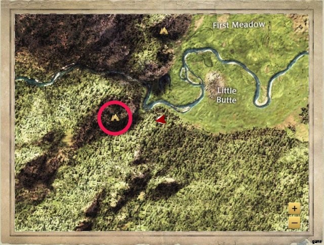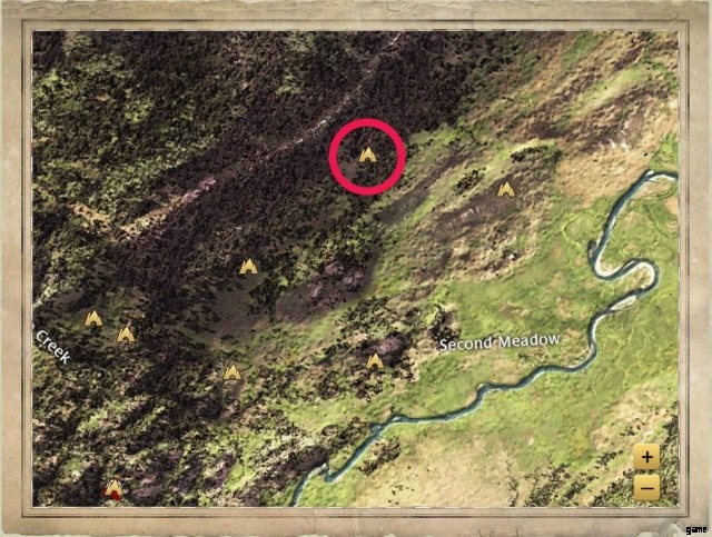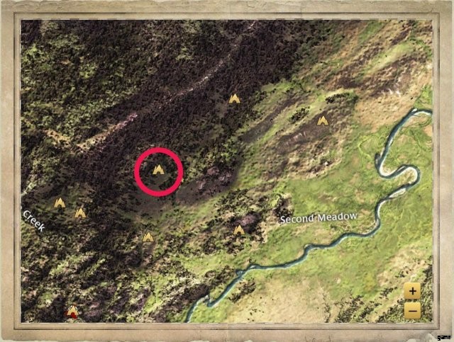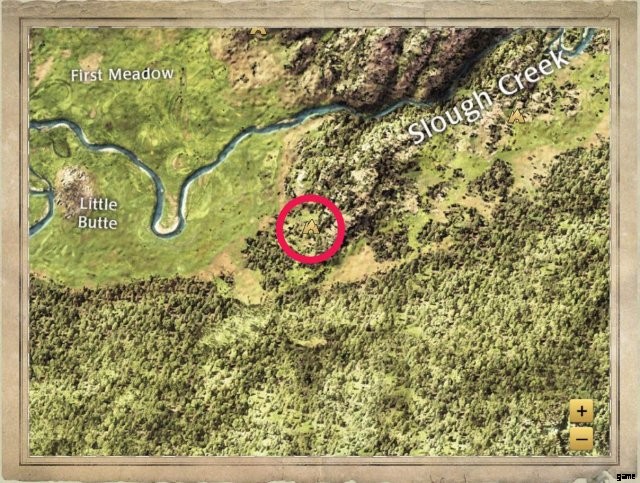 A rocky den in a hill that comes with a built in porch. It’s northeast of Second Meadow. This is the den seen in some of the development dev blogs, and the one used in the new Slough Creek trailer on the game’s official Youtube Channel.