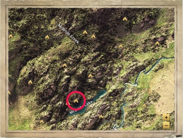 A little ways from the northern shore of McBride Lake. It’s at the foot of a hill, a little to the west of Rock Den 5.
