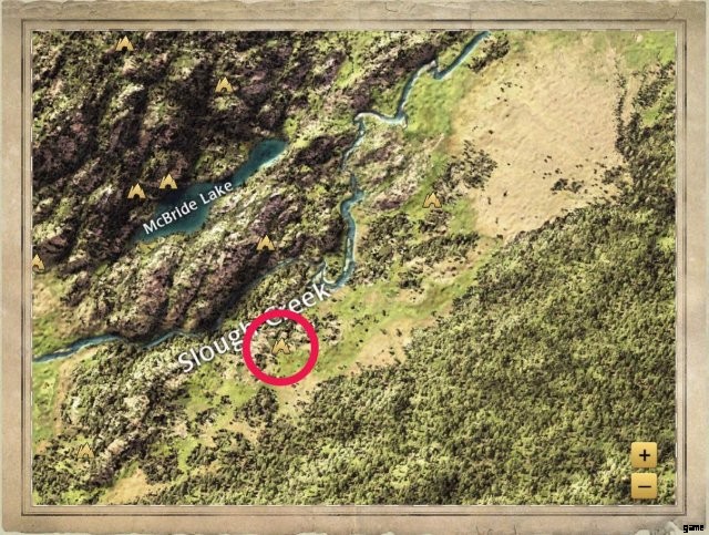 In an open field, south of Slough Creek. To the east is a wide, open space beta testers playfully refer to as the Parking Lot.