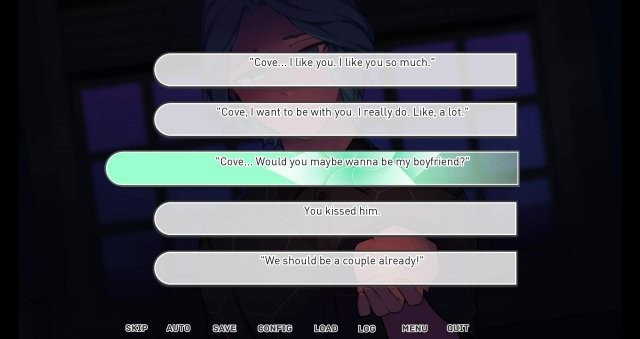 - ステップ 3 で、Cove にボーイフレンドになるように頼むか、Cove に恋をしていることを告白します。