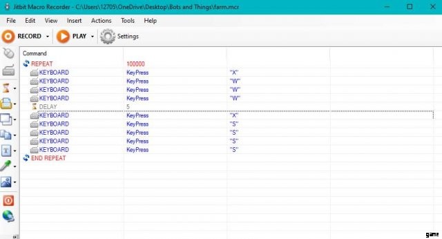 ループして前後に実行するプログラムが必要です。マクロには、戦闘終了画面を通過するために x キーを数回押す必要もあります。自分で作ることもできますし、私のものをコピーすることもできます。カスタム コントロールが設定されている場合は、編集が必要になる場合があります。
