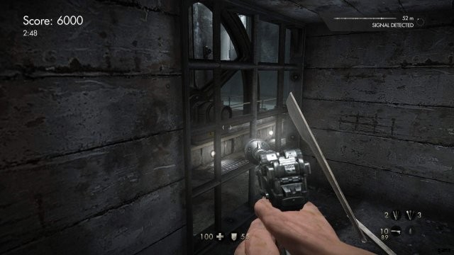 2人の兵士が通り過ぎるのを待って、静かに連れ出します。最初のものは頭に投げナイフがあり、2 つ目はサイレント ショットです。