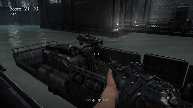 兵士たちが片付けた後、右の壁に固執し、角を曲がって重機関銃手たちを倒してください。
