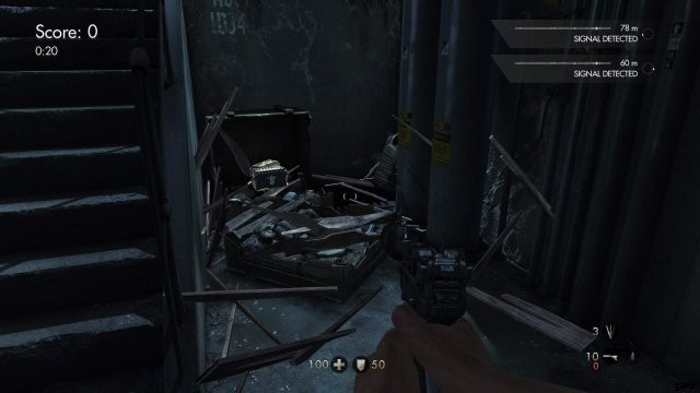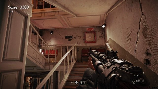 - 重い銃を手に取り、ボタンを押して、必要に応じて階段が角を曲がったところにあるドアに座って保持してください。