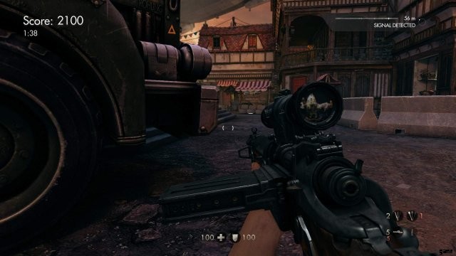 最初に開始するときは、ごみ箱の右側に移動し、上部にある 2 人のマークスマンを取り出します。ショットは 2 回だけで、1,200 のスコアで 2 回のヘッド ショットを取得できるはずです。