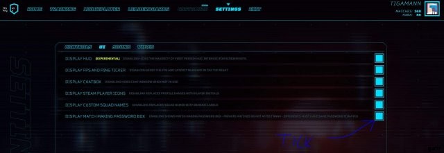 プライベート マッチを作成するには、最初に UI 設定を有効にして、マッチメイキング ページにパスワード セクションを表示する必要があります。
